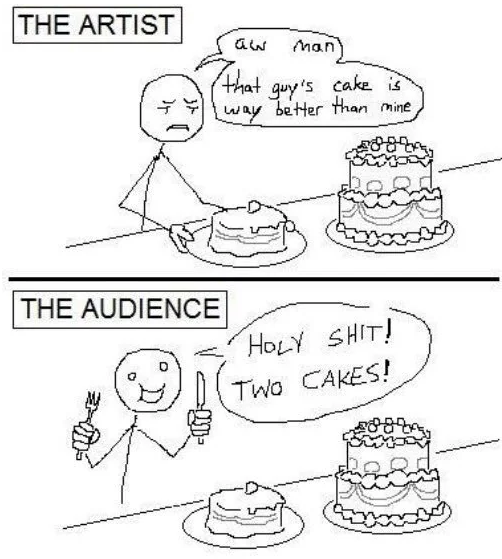im constantly just forcing myself to improve. i always end up getting burnt out. improvement is absolutely a good thing, but there isnt a moment where i allow myself to just.. step back and be content with how i am now.